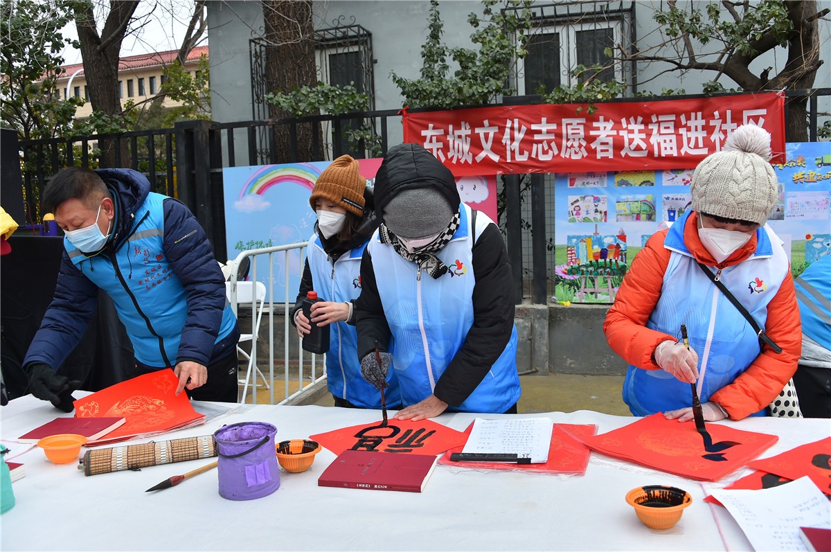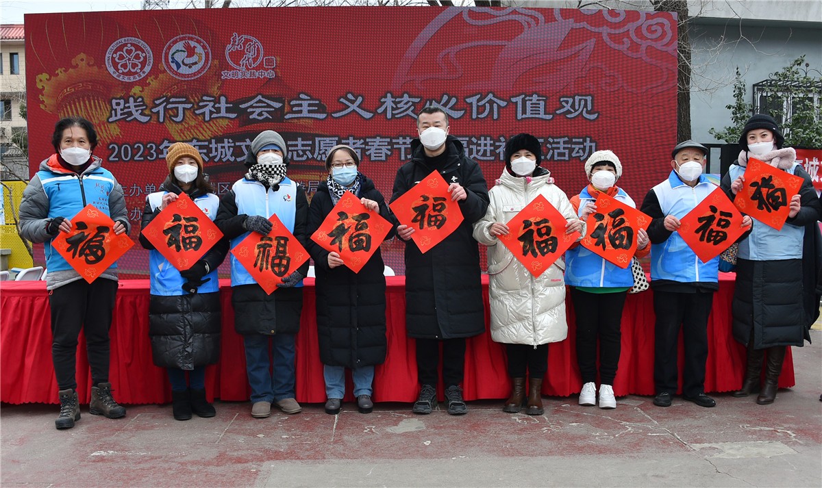 1月14日是农历小年,俗话说:过了小年就是年。在此新春佳节到来之际,东城区文化志愿者践行社会主义核心价值观,以新时代文明实践为载体,开展2023年送福进社区主题活动。志愿者们用书写福字的方式,迎接瑞兔幸福年。