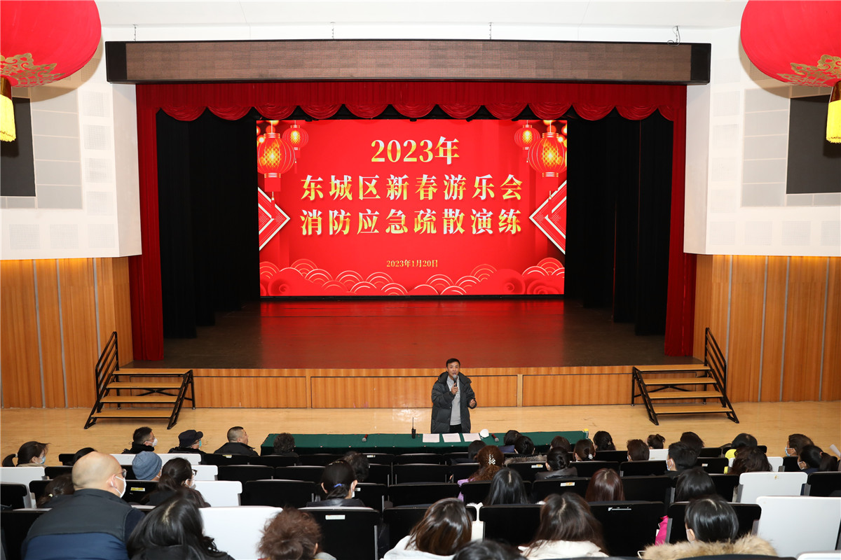 辞旧送吉虎,迎新接玉兔,2023年新春将至,与北京市民阔别三年的线下新春游乐会重新恢复。为平安有序举办好本次活动,1月20日在我馆三层风尚剧场开展了“东城区2023新春游乐会消防应急疏散演练”。区文旅局、区公安分局、区消防支队、交道口派出所、区文化馆、区图书馆等主办、协办及承办单位的相关领导及游乐会工作人员80余人参加了此次演练。