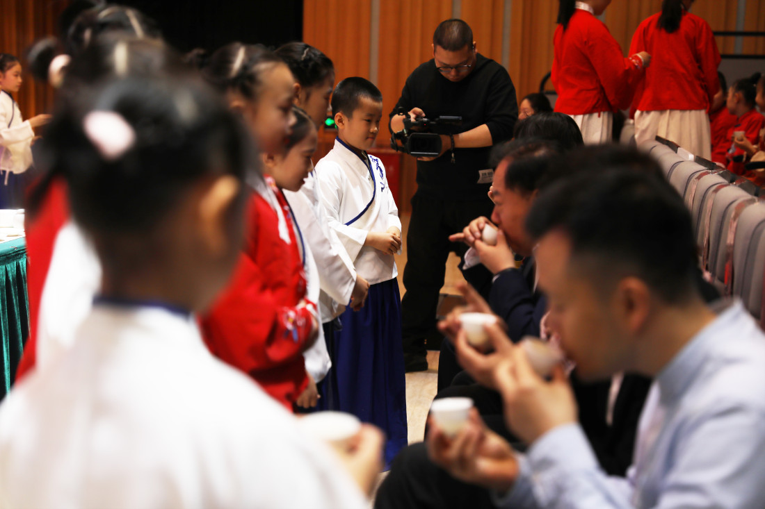 伴随着悠扬的琴声,少年宫小朋友们的茶艺表演拉开了本次朗诵读书行动的序幕。前门小学的学生们朗读的《茶经》经典段落;东城区特殊教育学校的师生们用手语表演了《茶经》,观众对他们精彩的表演报以热烈的掌声。中国社会科学院历史所研究员从历史和当下两大视角双重切入为孩子们展开古今思想的对话,讲解古籍朗诵的精髓,击穿当代人与古圣先贤之间的时空障碍,读书行动皆在启发青少年儿童通过读书行动传承传统文化,让朗诵典籍“活”起来。