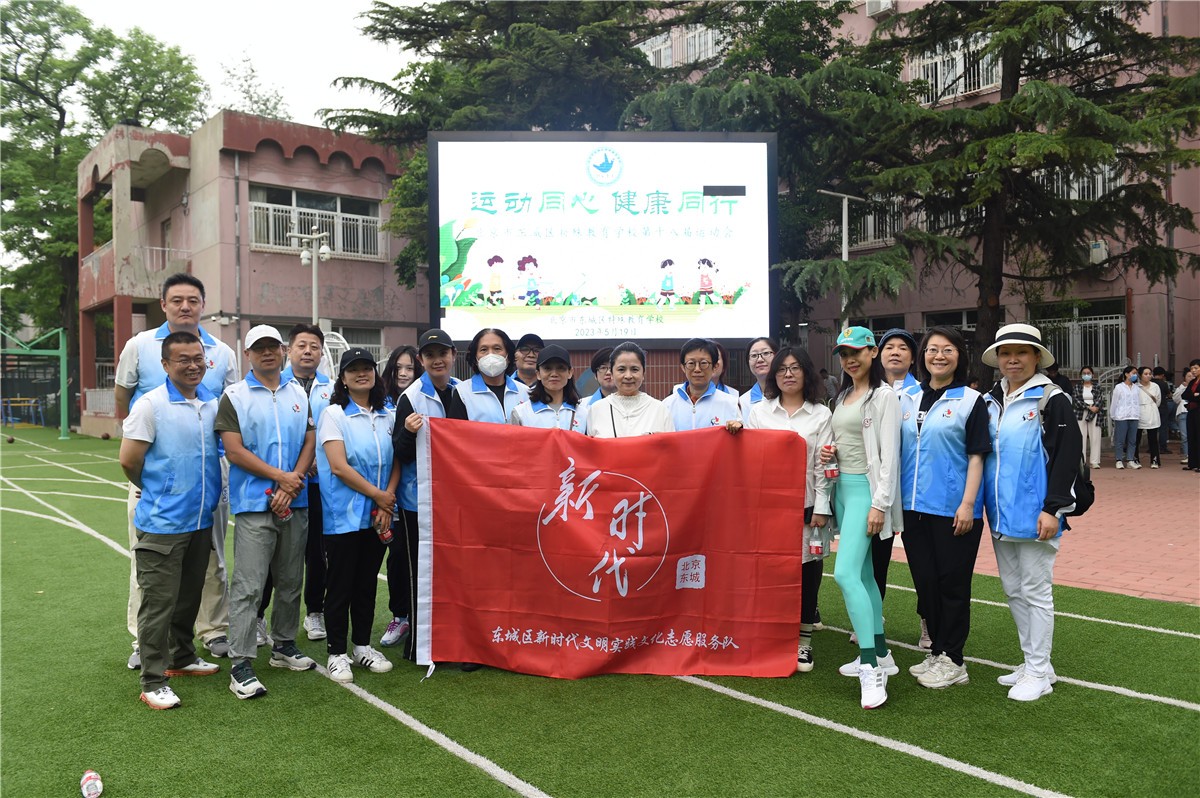 5月19日,在第三十三次全国助残日来临之际,东城区文化馆文化志愿者服务分中心的志愿者们,联合北京市东城区特殊教育学校的师生、家长代表以及民进会员们300余人齐聚一堂,共同举办全国助残日志愿服务主题活动—— “运动同心 健康同行”第十八届特奥运动会。