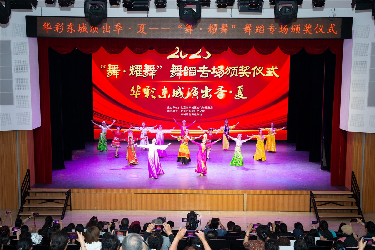 5月24日至25日,华彩东城夏季演出季之“舞•耀舞”舞蹈专场展演及颁奖活动在东城区文化馆风尚剧场成功举办。“舞•耀舞”舞蹈演出季是2023年东城区文化馆“华彩东城”夏季演出季中的重点项目,涵盖舞蹈艺术分享会、舞蹈作品征集、舞蹈专场展演三个版块。17个街道文化馆分馆积极组织报名,最终共有33支团队,34个作品参加展演和颁奖仪式,近千余人次参与活动。颁奖活动邀请东城区文化和旅游局党组书记、二级巡视员胡国伟现场挥毫题词“携手向未来”并与17个街道分馆领导共同启动了点亮仪式,颁发了优秀组织奖;东城区文化和旅游局副局长李新为展演团队颁发了荣誉证书。本次舞蹈展演增强了我区群众文化舞蹈的力量、增进与各分馆舞蹈团队的交流,提升地区舞蹈团队的表演艺术水平,舞出东城群众的精气神!