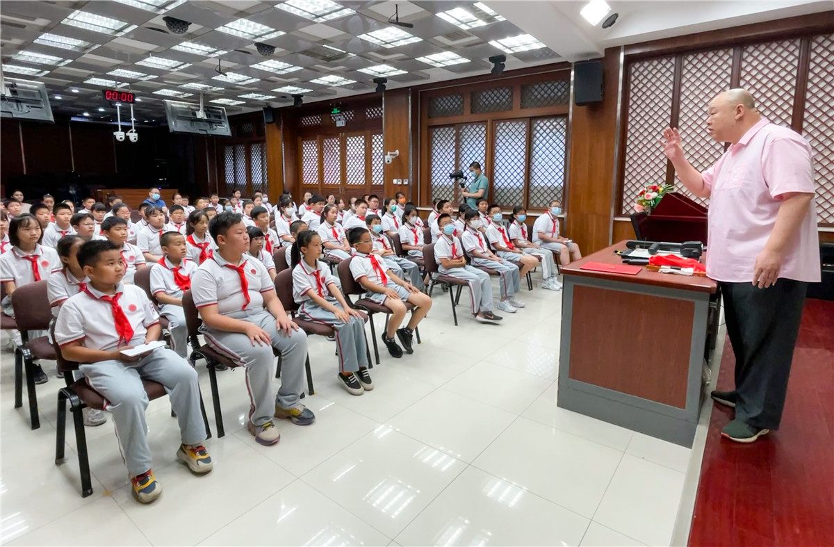 本次进校园讲座,王玥波老师从评书艺术普及的角度介绍了评书的概念,针对评书中道具如何应用展开讲解,并与同学们一起分享了评书中人物、语言、动作、表情的巧妙运用。讲座在王玥波老师传统评书小段《韩信分油》的精彩演绎中结束。此次名家进校园活动,充分发挥了文化馆全民艺术知识普及的教育作用。府学胡同小学一至六年级近4000余名师生共同感受到评书这一中华优秀传统文化的魅力,更加坚定文化自信。