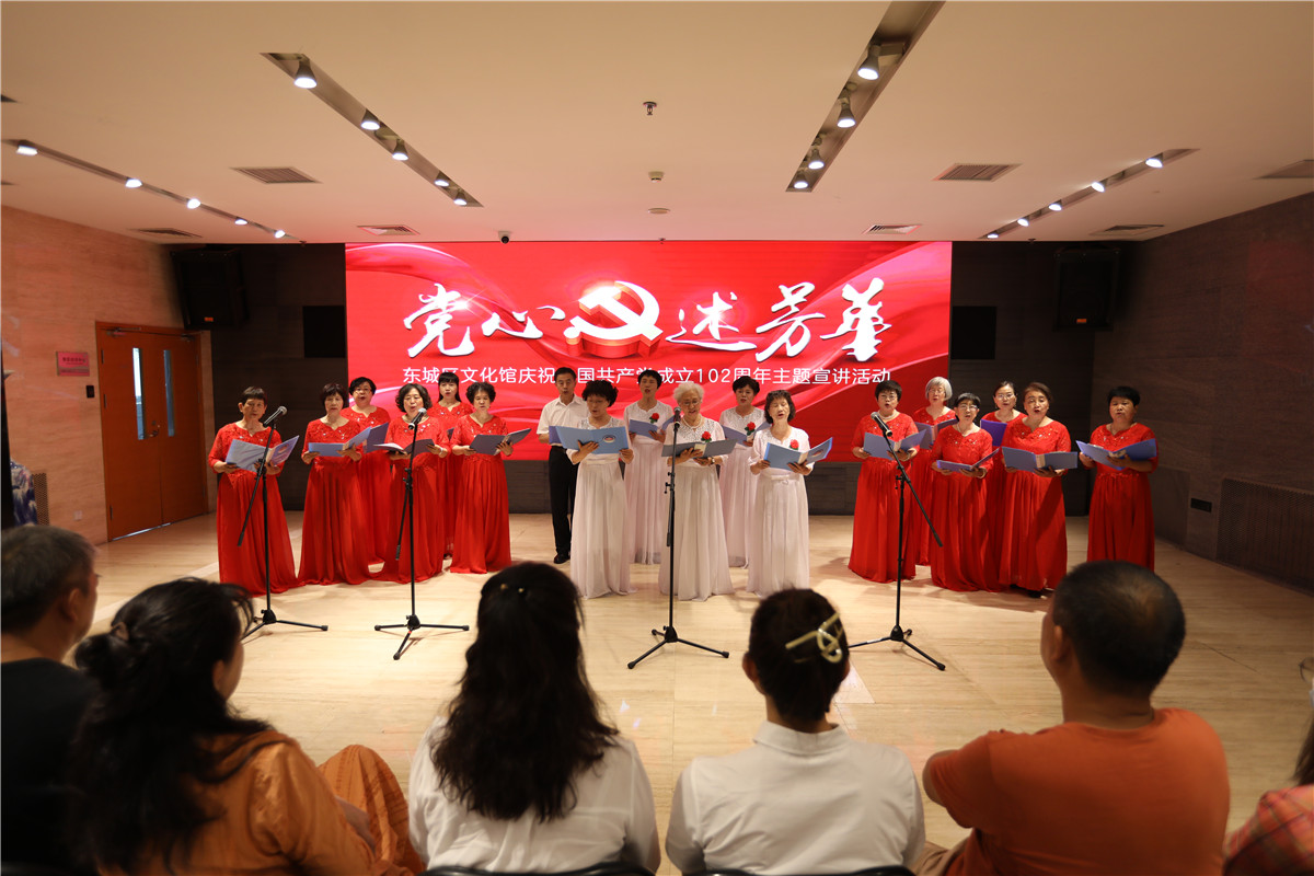 为庆祝中国共产党成立102周年,进一步学深悟透党的二十大精神内涵,增强党组织的凝聚力和战斗力,继承和发扬党的优良传统和优秀作风,东城区文化馆作为总馆携手各街道、社区共17个分馆联合举办了此次活动。