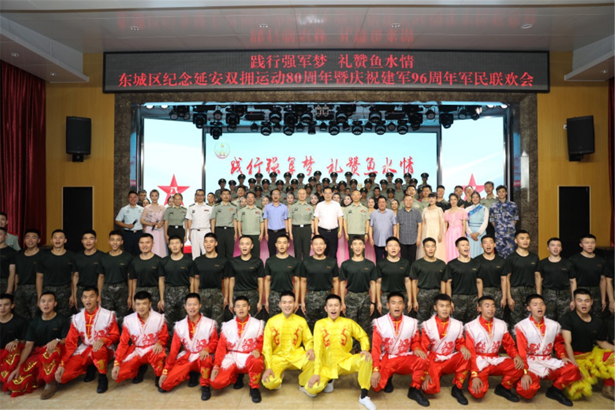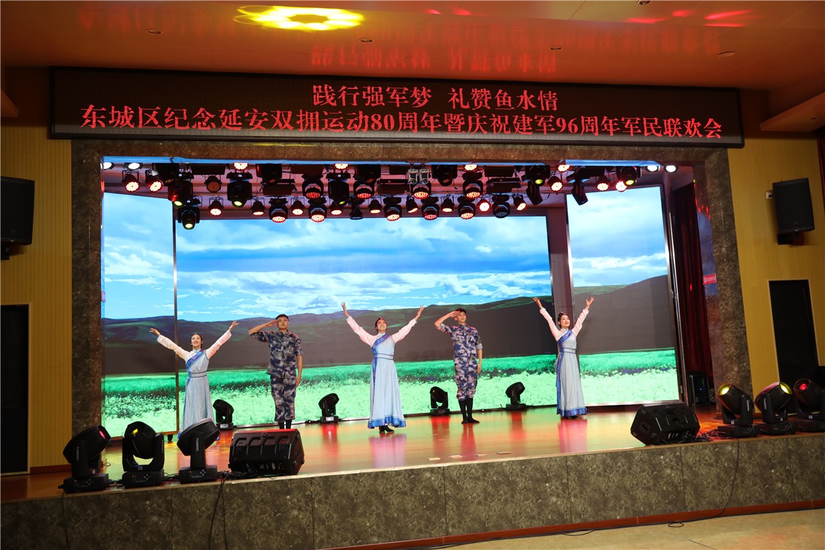 8月3日下午,由东城区双拥工作领导小组办公室、东城区退役军人事务局、东城区文化和旅游局主办,武警北京市总队执勤第二支队、东城区文化馆联合承办的“践行强军梦 礼赞鱼水情”——东城区纪念延安双拥运动80周年暨庆祝建军96周年军民联欢会在武警北京市总队执勤第二支队机关礼堂举办。武警北京总队执勤第二支队、东城区文化和旅游局相关领导与300名武警官兵共同观看了演出。