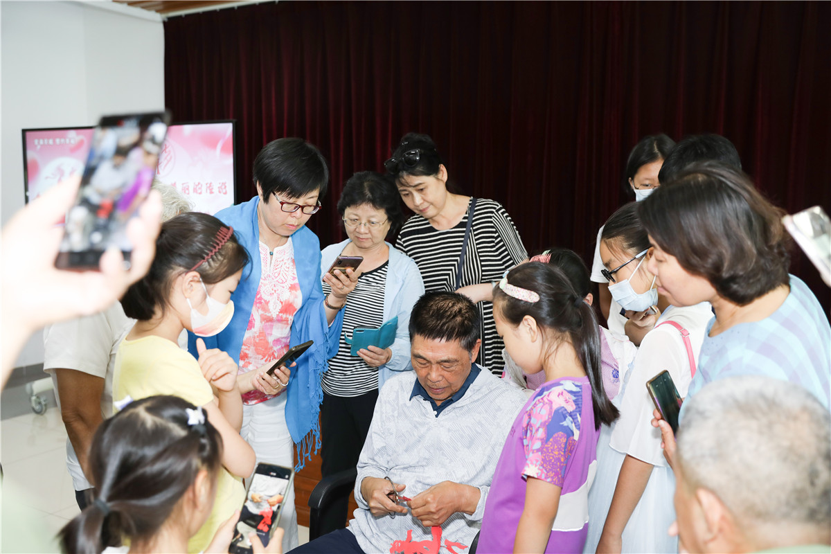 “感受别样文化魅力 剪出心中美丽传说”七夕主题剪纸创意文化活动特别邀请中国高级工艺美术师、北京一级工艺美术大师、北京剪纸非遗传承人徐阳老师在文化馆内为大家教授剪纸技艺。一把剪刀一张纸,一幅图画一段故事。简单工具的巧妙作用展现出剪纸这种镂空艺术独特的视觉呈现。通过老师近距离的技艺传授,学员们充分体会剪纸的乐趣,感受七夕节日氛围。
