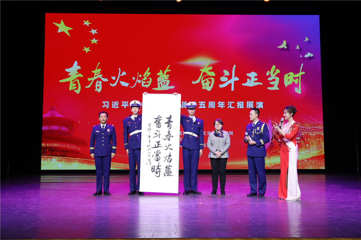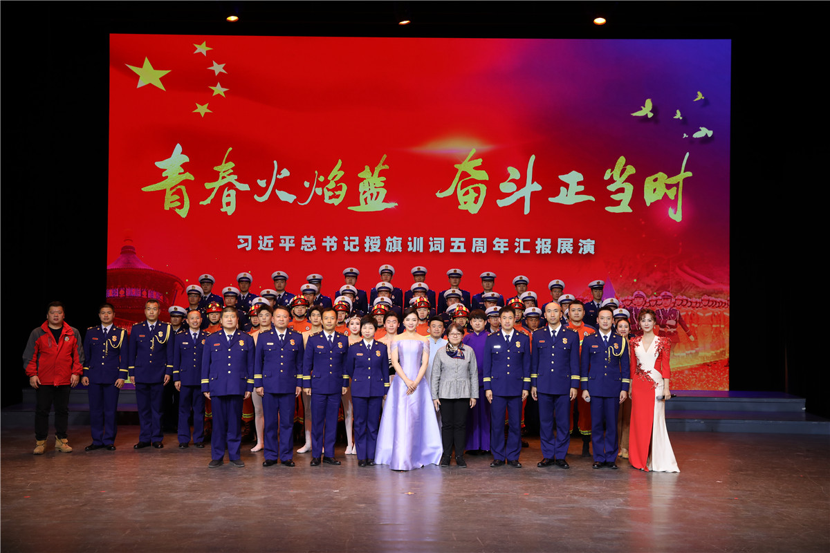 随后,东城区孙扬副区长宣布了2023年度119消防宣传月启动。东城支队联合区文化和旅游局共同主办,东城区文化馆承办以“青春火焰蓝,奋斗正当时”为主题的汇报展演,通过歌舞表演、器乐合奏、杂技相声、故事讲述等多种形式,展现东城支队踔厉奋发的精神风貌、踏实肯干的工作作风、永葆初心的为民情怀。演出以民乐合奏《唱响中国》拉开序幕。器乐合奏《我爱你中国》、民乐合奏《国彩华风》等节目谱写了中国共产党团结带领各族群众,领导中国革命和建设,并取得伟大成就的绚丽华章;相声《纪律》、歌曲《绿色背影》展现了东城支队在改革转隶期间继续传承发扬队伍优良传统,始终坚持纪律部队建设标准,以踔厉奋发的精神面貌迎接各种挑战;故事《用愚公移山的精神,守护国之瑰宝》讲述了东城支队五年来每一位指战员默默坚守、代代守护,用“愚公移山”的精神、踏实肯干的工作作风筑牢东城区消防安全防线。最后的大合唱《赴汤蹈火的我们》《歌唱祖国》将东城支队永葆初心的为民情怀用生动的方式表达出来,整场活动在经久不息的掌声中结束,赢得了在场观众的广泛好评。